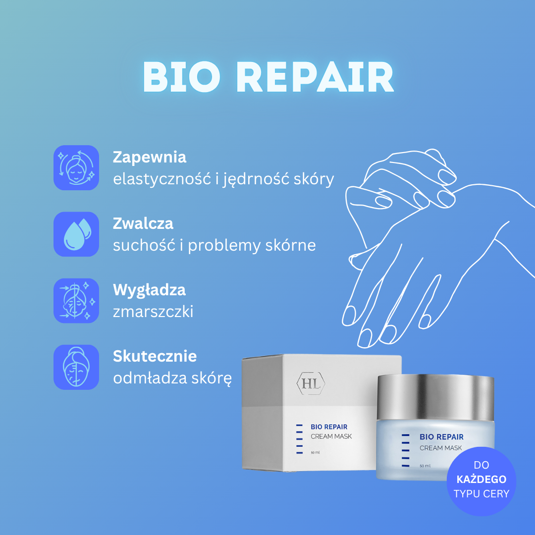 Produkty z linii Bio Repair zawierają w swoim składzie elastynę, kolagen, witaminę E i naturalny kompleks odnawiający. Linia ma za zadanie regenerację skóry, uszkodzonej przez czynniki zewnętrzne, aktywizację naturalnych procesów naprawczych. Ponadto produkty z serii nadają się do każdego typu skóry.