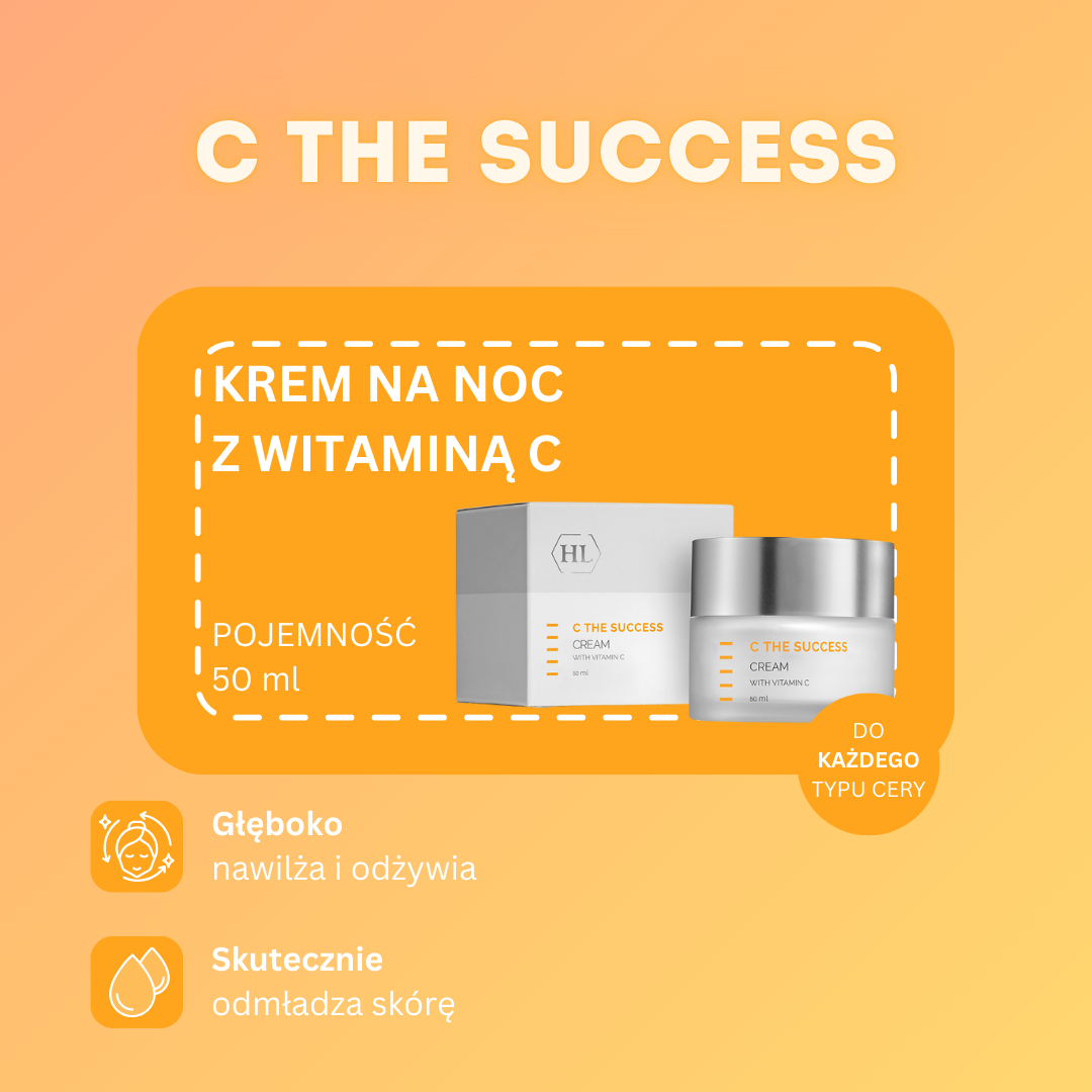 C The Success Cream – to krem odżywczy oparty na witaminie C. Chroni skórę przed szkodliwym wpływem wolnych rodników, wspomaga procesy regeneracji skóry uszkodzonej przez promieniowanie słoneczne, stymuluje syntezę kolagenu, walczy z objawami fotostarzenia.