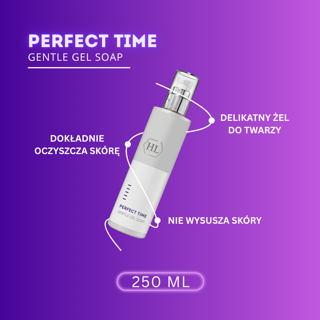 Perfect Time Gentle Gel Soap – to delikatny żel do twarzy, zapewniający optymalne i dokładne oczyszczanie. Perfect Time Gentle Gel Soap nie wysusza skóry. Zalecamy użyć przed nanisieniem: Perfect Time Daily Firming Cream, Perfect Time Night Cream, Neck & Décolleté Cream, Perfect Time Firming Mask oraz Lifting Serum.